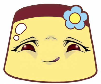 Flan-chan is a mentally sick Yandere flan adorned with a cursed blue flower℠1)